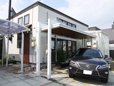 弊社のカースペースに三協アルミさんの多目的ルーフ「アトラード」を設置、展示しました。